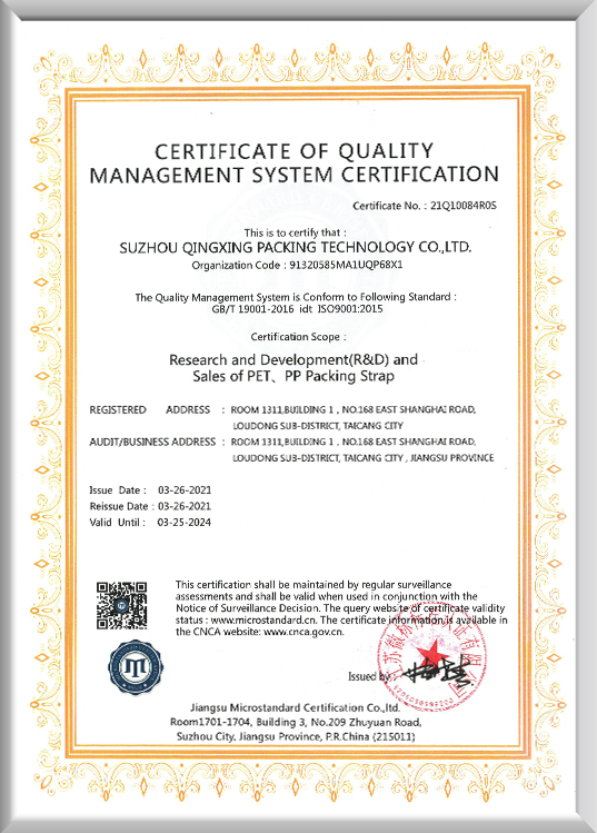 Suzhou Qingxing Packing Technology Co., Ltd. (ORTPAK) fabrique un cerclage pour animaux de compagnie haute performance, un cerclage composite, un cerclage PP; Depuis son établissement, Ortpak a adhéré au principe selon lequel 'la qualité est tout '.